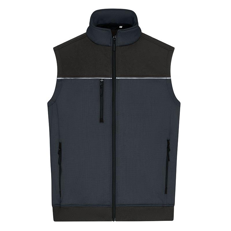 Ce bodywarmer unisexe en softshell Daiber® allie durabilité et style, idéal pour le travail. Construit en deux couches de softshell (96 % polyester, 4 % élasthanne) avec des renforts (88 % polyamide, 12 % élasthanne), il est résistant et souple. Les panneaux avant et arrière gaufrés ajoutent une allure technique.