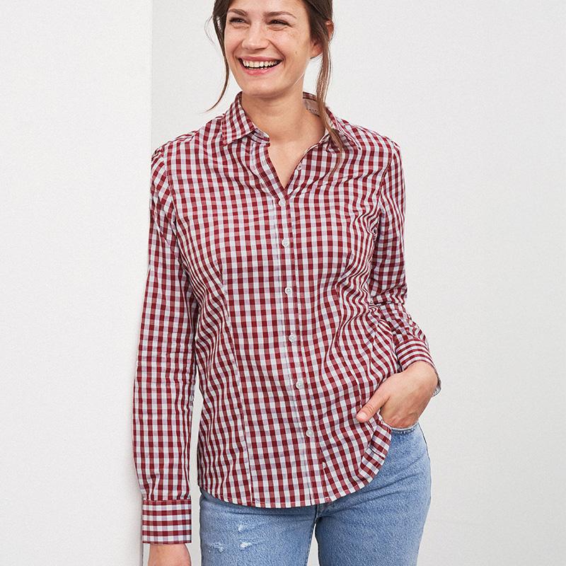 Le chemisier à carreaux pour femme Daiber® combine style moderne et confort. Confectionné en popeline 100 % coton (100 g/m²), il offre une coupe féminine ajustée et une texture douce, agréable à porter. Son traitement easy-care facilite le repassage, parfait pour un usage quotidien.