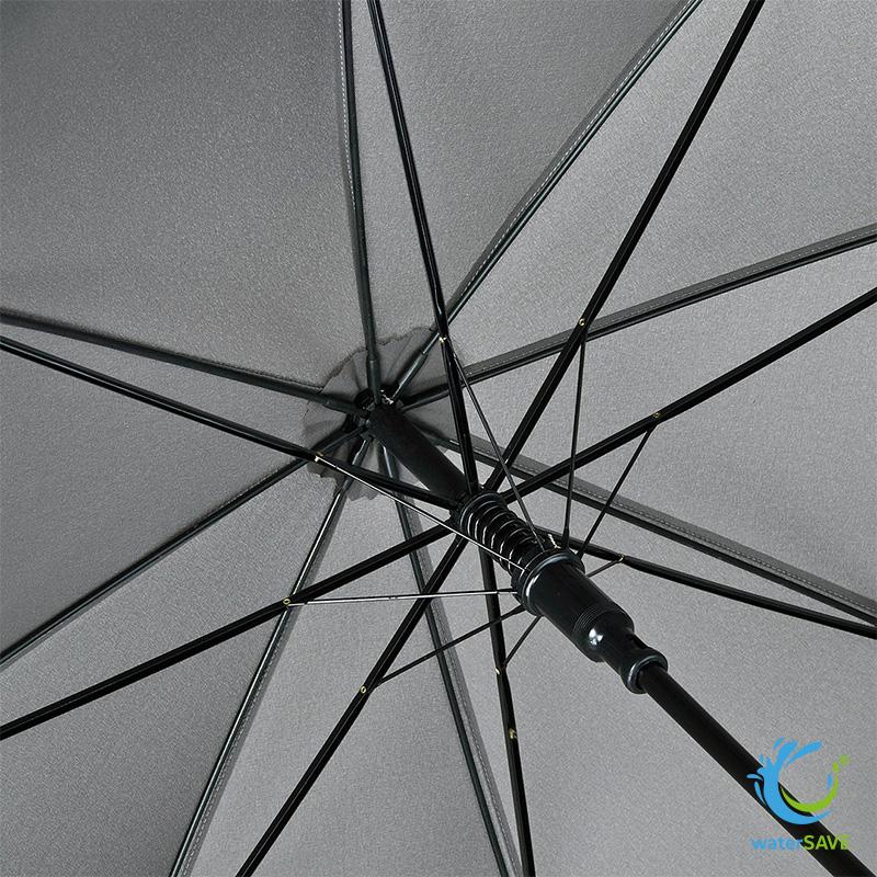 Le parapluie golf waterSAVE FARE® combine une toile en polyester pongé recyclé à 8 panneaux avec un baleinage en fibre de verre extra flexible Fibertec, offrant une structure robuste et souple. Son mât en érable de 14 mm et sa poignée canne en bois apportent une touche naturelle et durable.