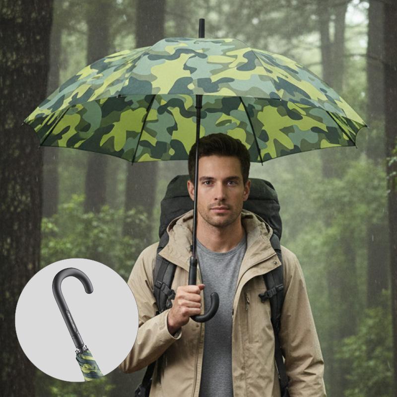 Avec un diamètre de 105 cm, ce parapluie de 465 grammes assure une large couverture, parfait pour des déplacements en toute sécurité sous la pluie. Sa toile en polyester pongé de qualité est ornée d'un motif camouflage unique.