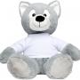 La peluche husky MBW® est un objet promotionnel en peluche grise et blanche extrêmement douce, haute de 26 cm. Conçue en polyester avec un rembourrage en fibres et un insert de granulés en PET pour une tenue stable, elle présente des yeux en plastique et un nez en peluche qui soulignent son expression attentive.