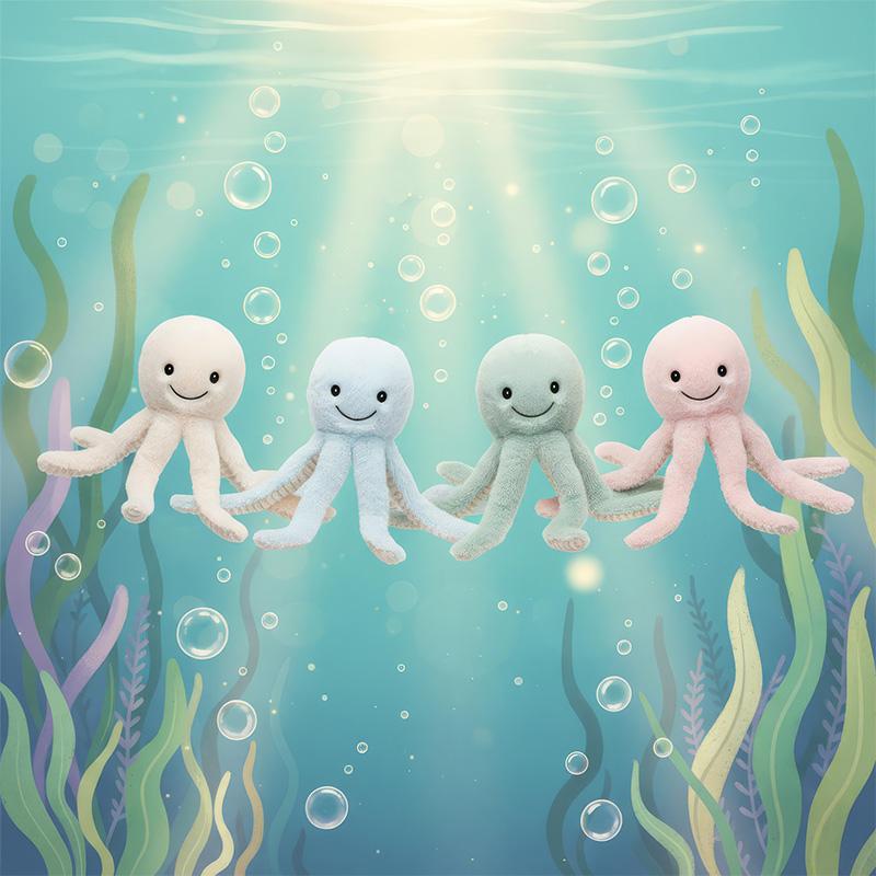 Personnalisable sur étiquette, cette pieuvre associe douceur, design et écoresponsabilité.