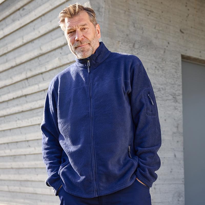 Veste polaire de travail pour homme Daiber®, conçue en polyester durable de 280 g/m² avec finition anti-boulochage pour un entretien facile. Ce modèle intègre des inserts contrastés en softshell sur les côtés et manches, assurant souplesse et style.