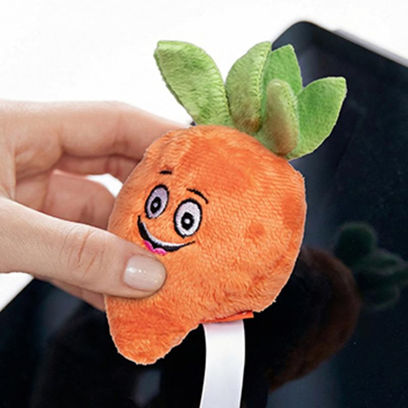 Le Schmoozies® Carotte de MBW® est une peluche colorée et pratique, parfaite pour nettoyer les écrans de téléphones et autres appareils grâce à sa face inférieure en microfibre. Avec son corps orange vif, ses nombreuses feuilles vertes en peluche et son expression amusante brodée, il apporte une touche ludique et originale.