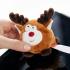 Mesurant 7 cm de diamètre, il est facile à manipuler et peut être utilisé par les plus petits. Cet élan est doté de bois, pieds et queue marron foncé, avec un corps plus clair, des oreilles blanches et un visage brodé comprenant un nez rond et rouge ainsi qu'une bouche souriante.