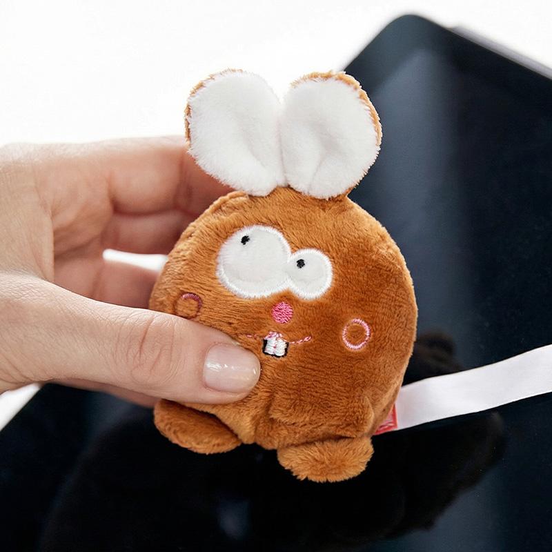 Le Schmoozies® lapin de MBW® nettoie efficacement les écrans de téléphones et tablettes grâce à son dessous en microfibre. Ce lapin en peluche brune douce se distingue par ses grandes oreilles dressées, sa petite queue ronde et ses détails brodés, incluant de grands yeux et des dents amusantes.