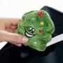 Avec un diamètre de 7 cm, il tient parfaitement en main. Ce sapin vert est décoré d'étoiles colorées et brodées, avec une grande étoile rouge au sommet. Ses yeux et sa bouche brodés lui donnent une apparence joyeuse.