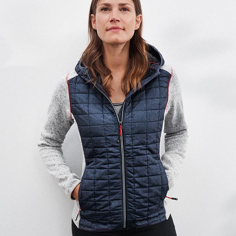 La doudoune hybride femme de Daiber® combine un tricot polaire en tissu mélangé, offrant chaleur et confort dans un style moderne. Fabriquée en polyester (280 g/m²) avec une doublure en polyamide et un rembourrage en polyester, elle est douce, facile d'entretien et idéale pour les journées fraîches.