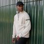 Le col montant et la fermeture zippée avec curseur métallique apportent une finition moderne et soignée. Les deux poches latérales zippées et la poche zippée sur la manche gauche, dotée d’un insert décoratif, renforcent la praticité sans compromettre l’esthétique.
