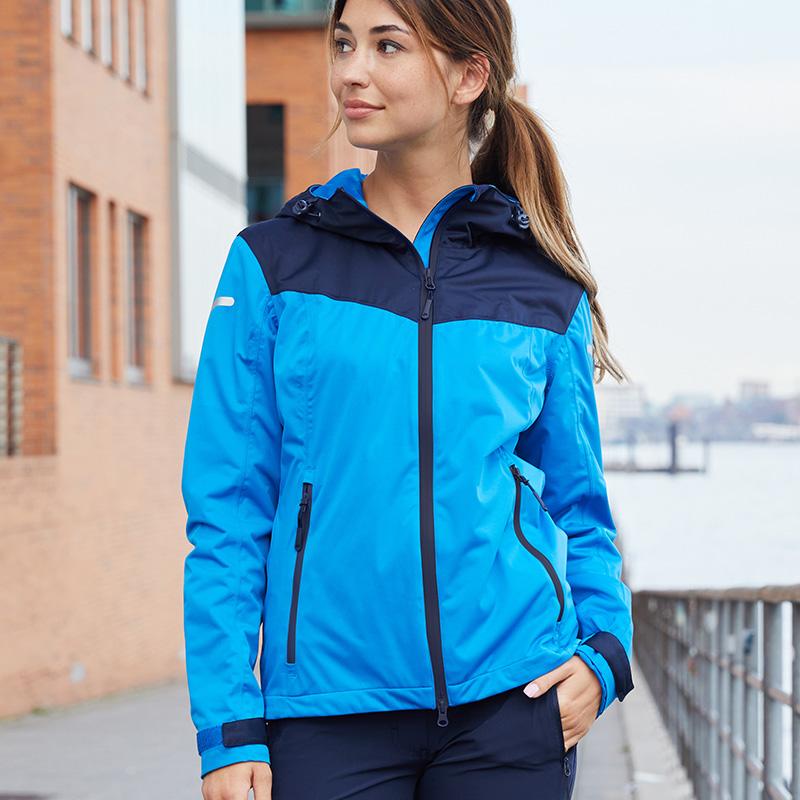 La veste softshell recyclée Daiber® pour femme est légère, imperméable (10.000 mm) et respirante (5.000 g/m²/24h), fabriquée en 100 % polyester recyclé. Elle offre une protection optimale contre les éléments grâce à sa membrane TPU et sa doublure en maille.