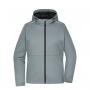 Veste softshell RPET légère femme Daiber®, conçue pour les activités extérieures par temps variable. Le col montant avec protège-menton, la capuche ajustable par cordon élastique et la coupe légèrement cintrée assurent une protection confortable tout en préservant la liberté de mouvement. Les impressions réfléchissantes au dos et à l’avant sur les épaules améliorent la visibilité.