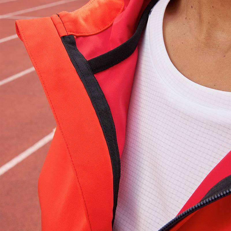 La matière softshell à membrane TPU 3 couches est coupe-vent et imperméable, avec une colonne d’eau de 5 000 mm. La fermeture zippée avec rabat intérieur, les deux poches latérales zippées et les deux poches intérieures apportent fonctionnalité et praticité au quotidien.